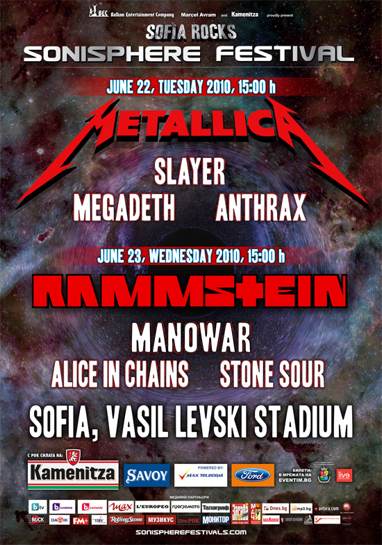 Ayer se celebraba el primero de los dos días del Sonisphere 2.010 en la ciudad de Sofia (Bulgaria), con uno de los eventos más esperados de la historia, y que pocas ciudades por las que pasa el festival podrán disfrutarlo: Las cuatro bandas más grandes e influyentes del metal extremo juntas sobre un mismo escenario. Sin embargo, dada la lógica expectación, el apodo de los Big Four empezó a cobrar vida propia, y a transformarse en una especie de festival dentro del festival. Así que apareció una web oficial informando de las fechas y con una propuesta cuanto menos original: Una fecha en concreto, podría verse simultáneamente, en cines de treinta y un paises (y treinta y cinco salas en España), via satélite y en alta definición, dicho evento.