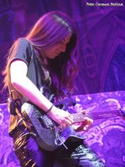Sobre su estilo guitarrístico no hay mucho que hablar. Técnicamente no le he visto mucha mejora en estos años. Quizás a nivel de lenguaje, recursos y limpieza sí, pero es que empezó a un nivel altísimo como ya he dicho antes. Pero el Jorge Salán cantante es otra cosa. Tiene una voz bonita y melódica así como una excelente dicción tanto en inglés como en castellano, pero le falta punch, le falta pegada. Personalmente, me recuerda al caso contrario que fue el de Steve Vai cuando se decidió a cantar en el “Fire Garden”. Tenía una voz poderosa y potente, pero le faltaba expresividad. Parecía un robot. También el Salán cantante tiene otro problema, pero esto lo explicaré cuando hable del directo.