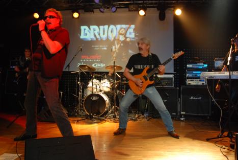 Y al final llegamos a la banda más esperada de la noche. La banda que lleva un nombre mítico. La banda de Pedro Bruque. Bruque in action! Fueron presentados por el periodista Jesus Penón, quién tuvo que leer un discurso de agradecimiento de la ex compañera de Pedro, Aurora Lombo, que se mostraba muy emocionada y no pudo subir al escenario. Los Bruque sin Bruque también salieron a lo grande, no dieron tregua y fueron a arrasar en el corto espacio de tiempo del que disponian. Así, fueron cayendo clásicos uno detrás de otro como «Pillando de lleno», «Libre» «En mitad del camino» para finalizar con el himno de la generación heavy española de los 80, «El heavy no es violencia». Tema, que si bien estaba convencido de que iba a sonar, esperaba que fuera en la jam final.
