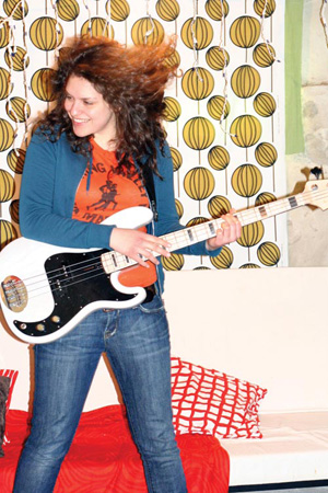 Julie Slick fue otra de las sorpresas del concierto. Con unas pintas «flashdanceochenteras» y un bajo estilo Fender mostró un sonido mucho más hard rockero que sus compañeros. Pese a que tocaba las lineas progresivas dictadas por la composición del «jefe», se nota que no es su lenguaje natural, y sin embargo, tal y como hemos podido escuchar en su disco en solitario, es capaz de adaptarse al estilo «crimsoniano» sin perder su esencia. No creo que pueda calificársela de virtuosa pero viendo sus solos tanto a dedos como a púa, la adaptación al bajo de cuatro cuerdas de la intro de tapping del «Elephant talk» de King Crimson —grabada en su dia por Tony Levin con su chapman stick—, y que ha girado con Jon Anderson, Stewart Copeland y Alice Cooper ya dan buena muestra de que estamos ante un gran talento en ciernes. ¡Y eso con sólo 21 años!