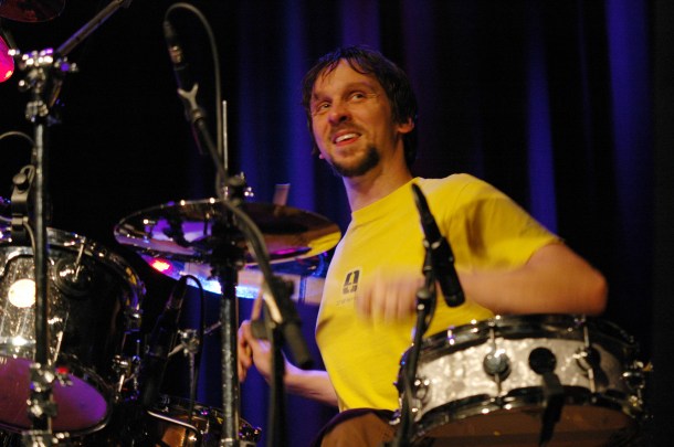 Pero, y antes de nada… ¿quién es Marco Minnemann? Bueno, si hubierais hecho los deberes lo sabríais, así que primero visitad este enlace en el que analizábamos el concierto de los Adrian Belew Power Trio y hablábamos sobre él y como fue capaz de levantar por dos veces a una difícil audiencia durante su solo. Con 31 años ha tocado en bandas dispares como Kreator, Necrophagist, Mike Keneally, Nina Hagen o Paul Gilbert, hasta llegar a la gira europea de los mencionados Adrian Belew Power Trio, en la que ha sido la cumbre de la complejidad técnica y musical a la que ha tenido que enfrentarse este joven músico, y que ha aprobado con sobresaliente. Además de eso escribe una columna mensual para la revista Modern Drumming Magazine y sus libros y DVD’s didácticos «Extreme Interdependence» y «Extreme Drumming» han ganado varios premios otorgados por los principales magazines de batería del mundo.