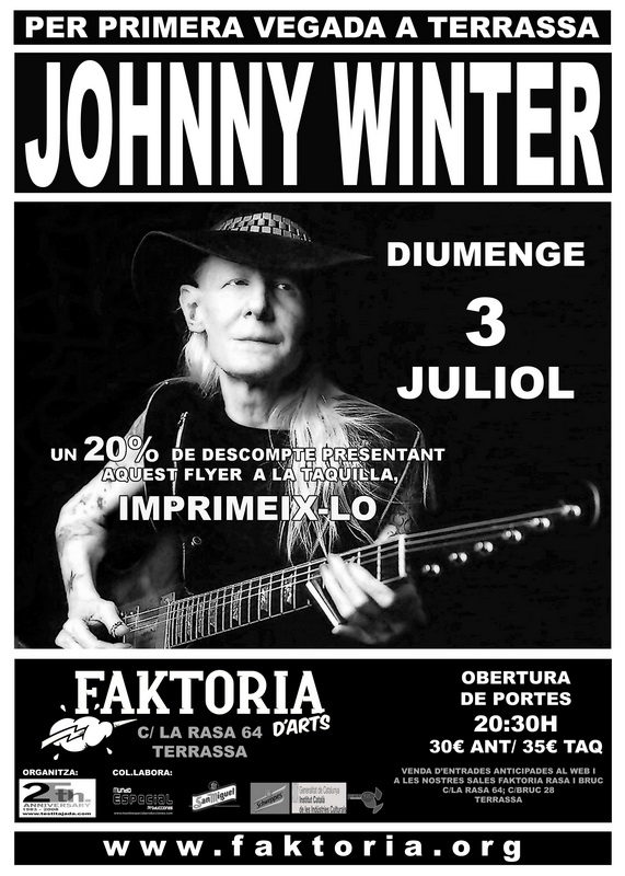 enzado con mucha energía. Tras apenas ocho mesas de la última visita a nuestro país del Tornado de Texas, una vez más hemos podido disfrutar de su presencia. Esta vez no ha sido Barcelona la afortunada, sino Terrassa (aunque bueno, dada la cercanía es casi lo mismo), Hondarribia (San Sebastián) y Alicante. Personalmente no sabía muy bien como afrontar este concierto. Mi primera toma de contacto con el albino fue en el 92 (al del 74 me era imposible ir habiendo acabado de nacer). Un concierto atómico, increíble. Como increíble también fue del 97 en el Festival de Blues de Cerdanyola, teloneado por una debutante Vargas Blues Band. Después de ello, el Poble Espanyol nos lo volvió a traer en 2.004 y la decepción fue total. Winter tocaba mal, muy mal, se iba de tempo continuamente y ello obligaba a sus músicos a seguirle. Intentaba tocar como siempre, como el shedder más virtuoso que jamás ha pululado por el mundo del blues. La gira de 2.008 ya hacia presagiar lo peor. Las fotos mostraban a un Winter muy cansado y que ya debía tocar sentado. ¡Hasta el tatuaje del dragón de su pecho había envejecido! Sin embargo, contra todo pronostico, aquel concierto sonó muy bien. Winter había asumido que ya era un ancianito al cual la salud, las drogas y su condición albina le estaban pasando factura. Así que decidió bajar el ritmo: sus manos ya no podían tocar con la velocidad y precisión de antaño, por lo que la música bajó de intensidad, potencia y tempo. De esta manera, y con el feeling intacto y acompañado de una banda nos ofreció un concierto en el Espacio Movistar de bandera.
