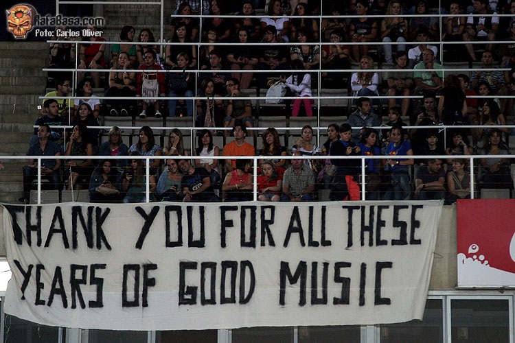 Un falso final y el grupo volvió de nuevo para tocar, ahora sí, el último de los temas de la noche, el «I love this town» de ese curioso experimiento pseudo country llamado «Lost highway». Pese a que «Always» no era un tema para finalizar el concierto, sonó tan bien que podía haber sido un buen final. En cambio el «I love this town» se trata de una canción hipercomercial, super happy y con un estribillo positivo y que transmite tan buen rollo que lo único que consigue es invitar al suicidio a quien la oye. Sí, ellos amaran al «town» de Barcelona, pero acabar así pues va a ser que no mola nada.