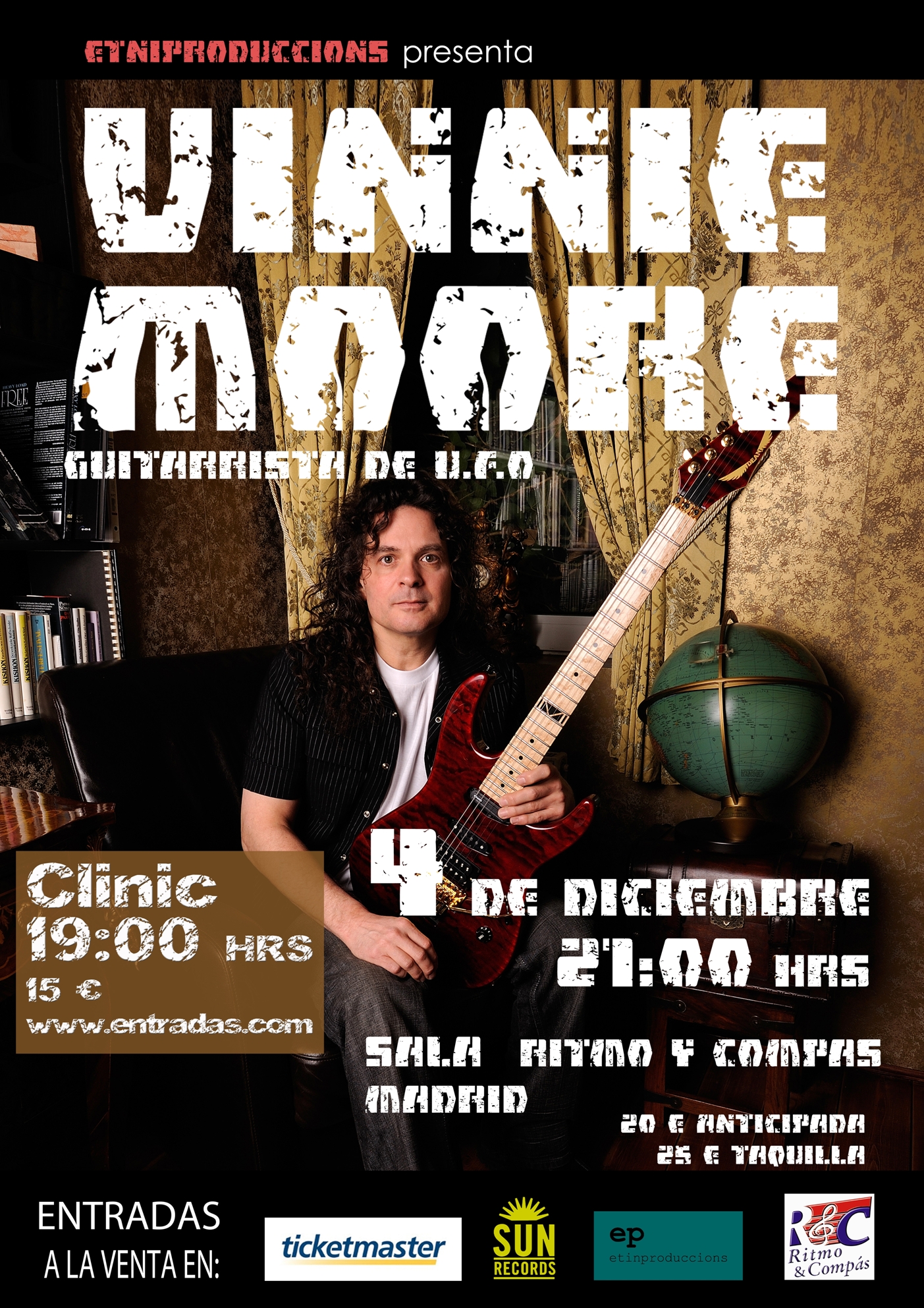 Vinnie Moore ya nos ha visitado en dos ocasiones: en 2.009 junto a UFO y el año pasado en solitario, actuando en Las Palmas y Bilbao. En esta ocasión las ciudades que visitará serán las siguientes: