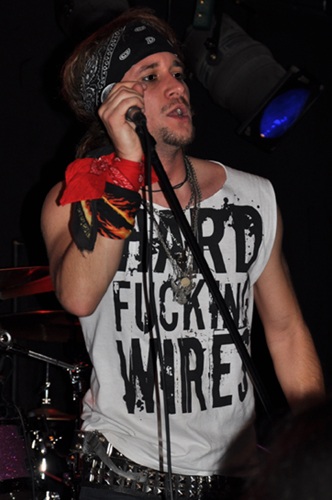 ada la asistencia de ningún telonero, un cartel con el nombre de Hard Wires escrito a boli que vimos al entrar a la sala nos dio a conocer su existencia. En verdad nos costó entrar en su rollo. Los nervios pasados con la entrevista (que fue genial) y las ganas de ver al genio de la guitarra nos impedian concentrarnos. Además, el hecho de ver al cantante con un estilo tan rancio, ochentero e hiperagudo en su forma de cantar hizo que no disfrutáramos del comienzo. Pero por fortuna, esto sólo duró un par de canciones. La banda formada por Fleky (baterista), Mark Bass (bajista), Luismikiss (guitarrista) y liderada por el vocalista argentino Kalen H-W nos convenció a base de un set muy enérgico y rockero. Siendo su estilo una especie de fusión entre Poison y Skid Row (de hecho tocaron un cover de “Talk dirty to me” de los primeros), nos ofrecieron un show muy ochentero con grandes dosis de actitud y buena puesta en escena. A destacar el carismático vocalista que supo hacer muy bien su papel de frontman y del cual cabe destacar su notable técnica vocal -de la cual renegamos en las dos primeras canciones-, y que cantó al límite de sus posibilidades desde la primera estrofa a la última. Como dato negativo estaría el guitarrista, cuyos solos mostraron bastantes errores. En su descargo decir que teniamos el chip puesto en modo «virtuosismo neoclásico» ante lo que íbamos a ver más tarde, y que la actitud, buen rollo y energía que desprendía Luismikiss y toda la banda hacen que pasemos por alto cualquier bending desafinado que pudieramos oír.