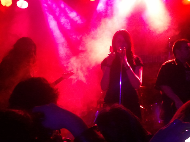 Leaves se mueven en una onda de metal gótico y doom ambiental muy interesante. Enseguida destaca la voz de Raquel, con un estilo muy expresivo y muy buena técnica y que curiosamente recuerda por momentos a Björk. En cuanto salieron a escena ya vimos un serio problema y fue que la voz estuvo un poco baja, y claro, la música está muy centrada en la creación de ambientes un tanto etéreos y oscuros en los que la voz en el eje. A favor tuvimos que tanto el dúo de guitarras como el bajo sonaron con mucha potencia y claridad.