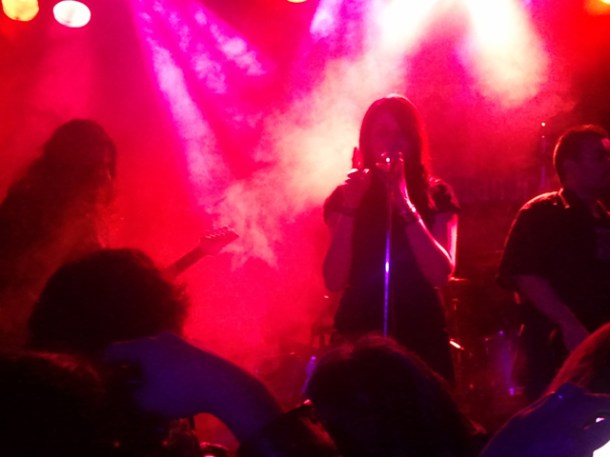 Al finalizar el primer tema, Raquel presentó a sus compañeros y comentó lo feliz que estaba ya que dos semanas antes la habían operado de un problema en una retina y ya podía estar sobre el escenario. Sin conocer el directo de esta banda, creo que esta fue la razón para verla un tanto estática durante el set. Cierto es que su música no es para pegar muchos botes, pero el sonido es contundente y muy denso, así que unos meneos de melena no sobran. Pero por esta vez se lo perdonamos.