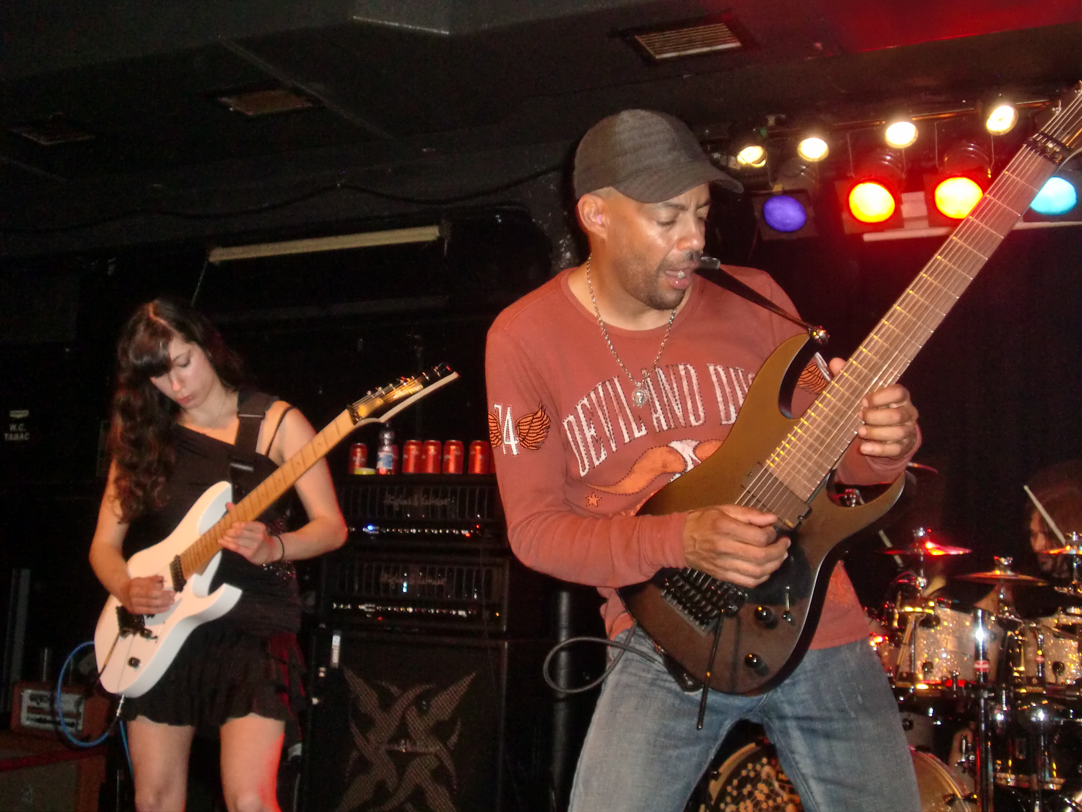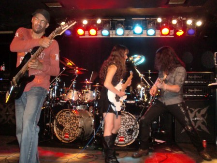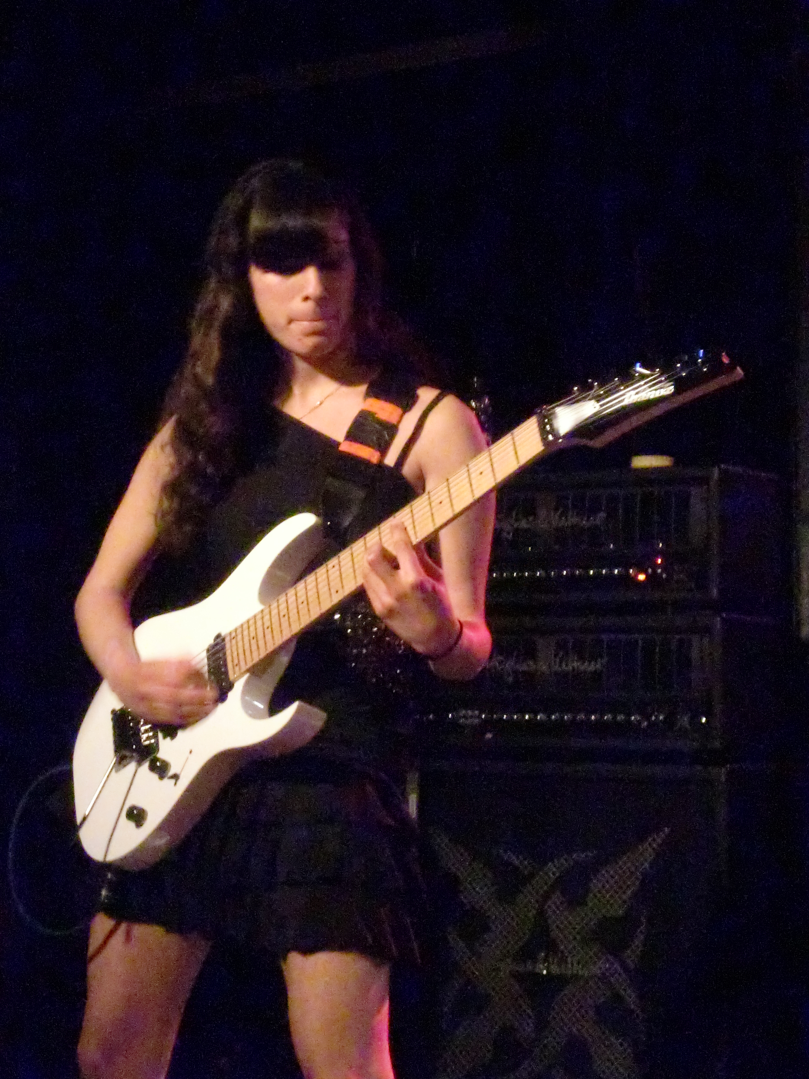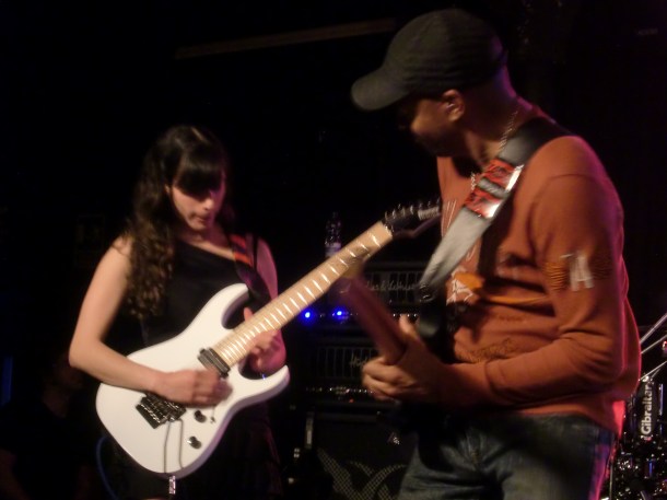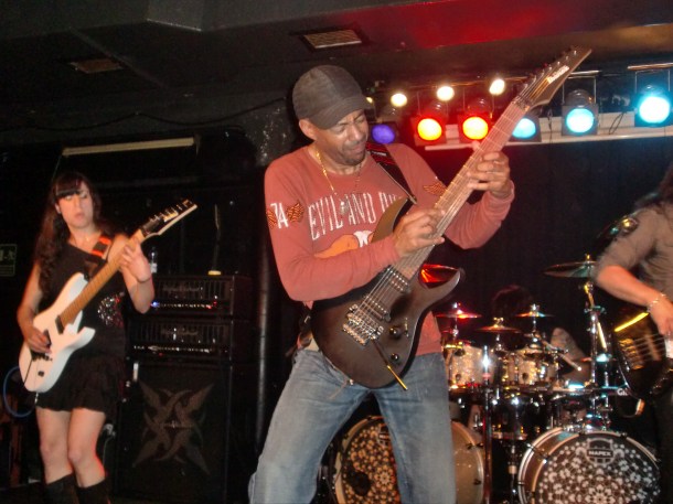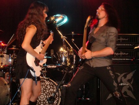 En cuanto a la ejecución de los temas, la perfección casi absoluta vino por parte de Tony (aunque el comienzo de «Stream dream» pareció atragantársele un poco, como sino se acordara) y Nili. Mientras el primero se encargaba de las melodías de todos los temas, la segunda se encargaba de la parte rítmica. Los solos, como es lógico, eran tocados en su mayoría por Tony pero Nili no desaprovechaba la ocasión de lucirse cuando le tocaba. Además, hay que destacar que una característica común en el heavy metal neoclásico de los 80 era incluir pequeños solos o escalas muy rápidas entre riff y riff. Normalmente se recurría al uso de armonizadores en directo, pero Nili no tenía ningún problema en doblar a Tony en numerosas ocasiones, y eso que a la muchacha le tocaba seguirle en momentos en que el maestro ponía la velocidad punta. Pese a salir a tocar con cierta timidez escénica, comenzó a animarse poco a poco, gracias en parte a los vítores del público, y acabó saludando entre canción y canción y luciendo una bonita sonrisa de oreja a oreja en muchos momentos (vale, se nos ve el plumero, pero es joven, guapa y shredder, así que ¿qué esperáis?). Respecto a Tony, resulta muy curioso el ver como otros músicos legendarios de su quinta, como Vai, Malmsteen o Satch ya no tocan al mismo nivel que antes (hablamos de técnica y velocidad, no de composición). Es algo normal puesto que la edad empieza a pasar factura. Sin embargo, en el caso de MacAlpine, no acusa para nada la edad, tocando quizás con más precisión y velocidad que antaño. Y en un concierto a este nivel de exigencia física es algo de lo más meritorio… y sorprendente.