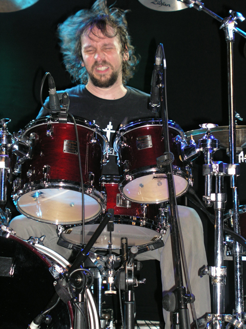Y a nivel técnico, pues no es que haya mucho que no se haya dicho ya. Marco Minnemann es DIOS. No sólo toca lo que quiere con un esfuerzo mínimo, sino que además lo hace siempre con un sonrisa de oreja a oreja. Si Mike Portnoy además de un virtuoso es un tipo divertido, carismático y cercano al público, qué duda cabe de que Marco también lo es, con lo cual, insistimos una vez más en que era el recambio perfecto para Dream Theater (sin menospreciar el trabajo futuro en la banda de Mike Manginni, porque de momento no ha demostrado, o mejor dicho, no le han dejado demostrar casi nada). Una vez más se volvió a repetir lo vivido en el concierto de Adrian Belew Power Trio: el que la gente aplaudiera varias veces en medio de un solo de batería. Si bien en el concierto de los ABPT esto ya sorprendió puesto que el concierto fue en Luz de Gas y ante un público más «selecto» y cultureta que no el congregado en Bikini, no es menos cierto que el solo de batería suele ser el momento más tedioso de cualquier concierto. Sin embargo, a nivel técnico deslumbra y encima es capaz de hacer cosas divertidas como tocar la célebre tonadilla de «La Cucaracha» con la batería. Poca gente es capaz de lograr esto; el componer un solo de batería que divierta y no aburra. Habría que ir a ver los directos de Virgil Donati, Mike Terrana y pocos más para encontrarse ante algo así.