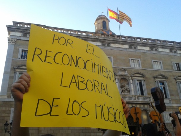 Varias eran los temas a reclamar: desde la sustracción de instrumentos a músicos callejeros por parte de la policía, multas a bares que promueven la música en vivo, falta de recursos y locales para músicos, la mencionada subida del IVA o, cómo reflejaba una pancarta (curiosamente la única que se vio), reclamar derechos laborales de los músicos. Cada cual tenía su interés en reclamar algo en concreto, pero a todos los asistentes le unía la pasión por la defensa de la música. En cuanto al último punto comentado, el de los derechos laborales, hemos extraído un fragmento de un largo texto (leer aquí) publicado en la web de la Asociación de Músicos Profesionales de España (A.M.P.E.) en el cual se refleja la problématica actual: