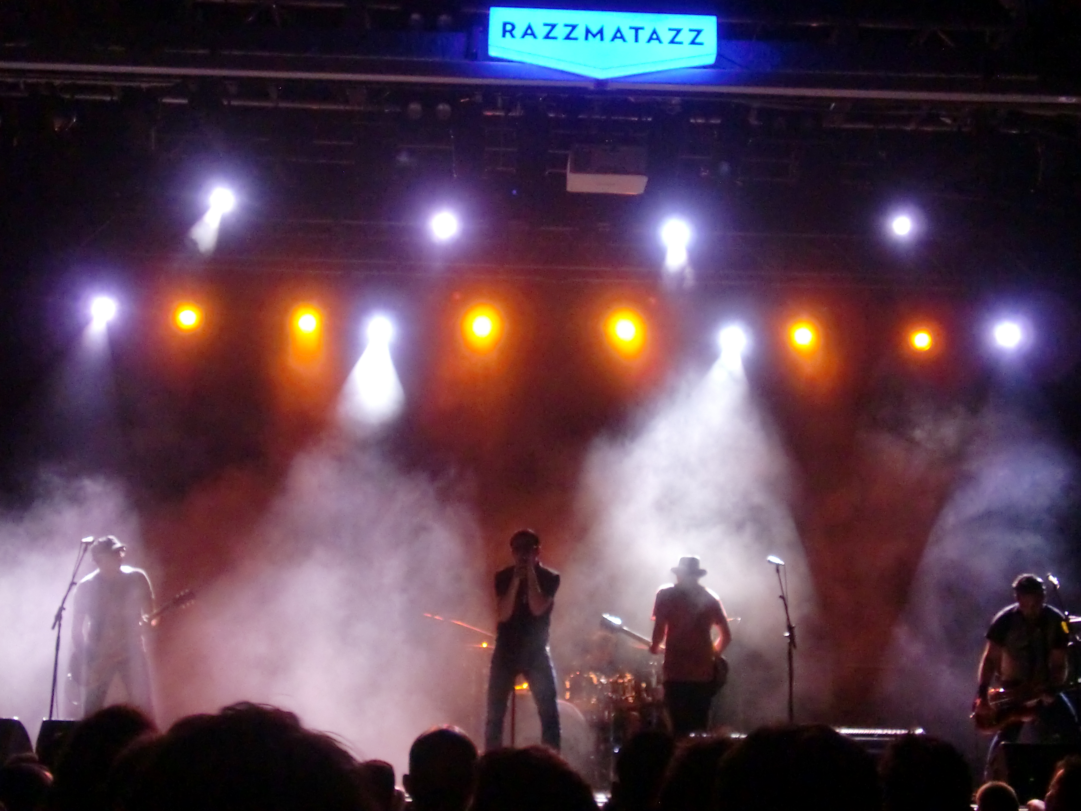 Tras el consabido cambio de backline, ya hubieron varios detalles que nos hicieron empezar el concierto principal un tanto rallados. En primer lugar, el asfixiante calor de la sala. Si bien Razzmatazz suele ser una sala «calentita», directamente aquella noche no funcionaba el aire acondicionado; o más bien no lo habían calculado para un lleno total de la sala. Con deciros que a la salida, la marea de cuerpos sudorosos había provocado que el suelo resbalase. Y no, no se trataba de caídas accidentales de cerveza o refrescos, ya que eso suele dejar el suelo pegajoso. Eso sí, sin duda la venta de bebidas en las dos barras debió de ser excelente. ¡Gracias, Razzmatazz!