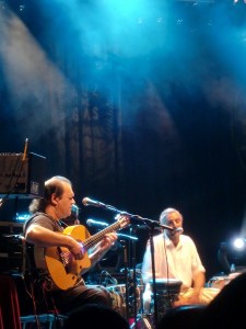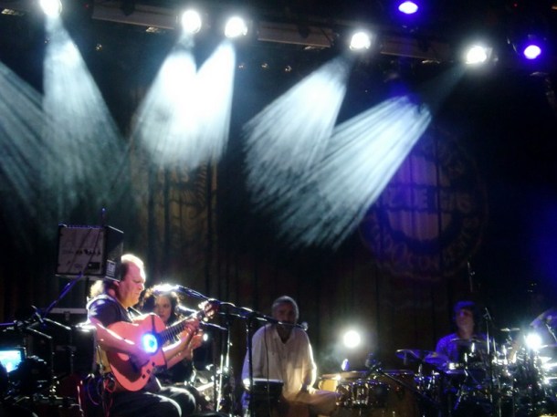 La banda comenzó con el tema «Amalgama», composición antigua del percusionista y la mejor muestra para que los asistentes supiéramos qué íbamos a ver: flamenco, jazz, algo de rock progresivo, un nivel técnico tremendo, solos de casi todos los miembros y unas composiciones en extremo complejas pero sin la sensación de «taladro en la cabeza».