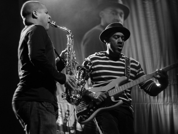 Miller (que se encarga del bajo eléctrico con y sin trastes, el contrabajo, la trompeta y el clarinete bajo) se ha hecho acompañar de músicos que rayan a un nivel altísimo: Federico González Peña, Bobby Sparks y Kris Bowers (piano, sintetizador y órgano), Sean Jones y Maurice Brown (trompeta), Alex Han (saxo alto), Ramón Yslas (percusión), Gretchen Parlato y la superestrella latina Rubén Blades (voces), Louis Cato (batería), y por último lo que más nos interesa junto al bajo: las guitarras de Adam Rogers (James Carter Group y Joe Jackson Band), Adam Agati (Ludacris, Angie Stone, Jeff Coffin, etc., y ¡profesor de guitarra para Miley Cyrus durante el rodaje de la película de Hannah Montana!) y el legendario y Grammyficado Paul Jackson Jr. (Michael Jackson, The Crusaders, Celine Dion, Madonna, Destiny’s Child, Quincy Jones, Aretha Franklin, George Benson, Barbara Streisand, Whitney Houston, Elton John, Backstreet Boys, etc., mejor paro, ¿no?).