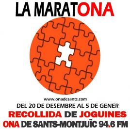 ¡Un año más llega la MaratOna! Organizada por nuestra «casa», la Ona de Sants-Montjüic, esta iniciativa solidaria llega a su edición número 18 cumpliendo mayoría de edad e intentando como siempre que se cumpla su ya célebre slogan: «Una joguina, un somriure» («Un juguete, una sonrisa»). Y un año más esperamos llenar unas cuantas furgonetas y repartir tantos juguetes como sea posible.